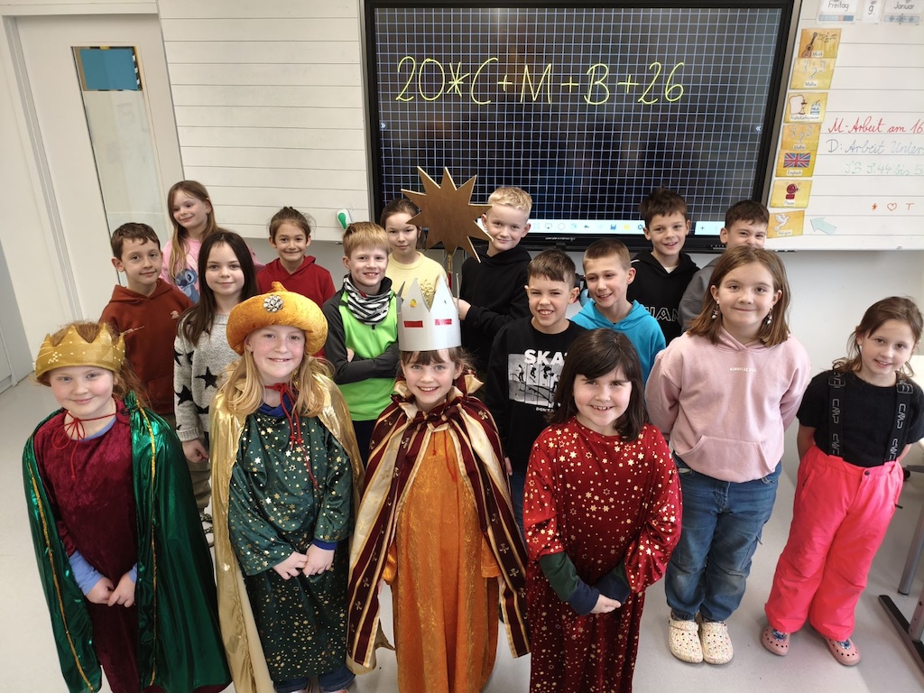 Auch in diesem Jahr waren die Sternsinger wieder in der HTG unterwegs. Sie sangen ihre Lieder, segneten die Klassen und schrieben den Segen über die Klassenzimmertüren. Dabei berichteten sie, dass sie bei ihrer Aktion am 6. Januar 2026 über 9.500€ für Kinder gesammelt haben, damit diese nicht mehr in Fabriken arbeiten müssen. Der Einsatz und das Engagement der Sternsinger wurde von allen bewundert. (U.F-K.)